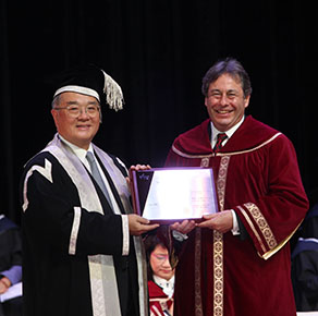 Dr David PILSBURY於2014年度畢業典禮上獲教育統籌委員會主席鄭慕智博士, GBS, OBE, JP頒授VTC榮譽院士榮銜
