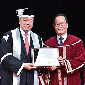 關育材工程師, JP於2015年度畢業典禮上獲教育統籌委員會主席雷添良先生BBS, JP頒授VTC榮譽院士榮銜 |