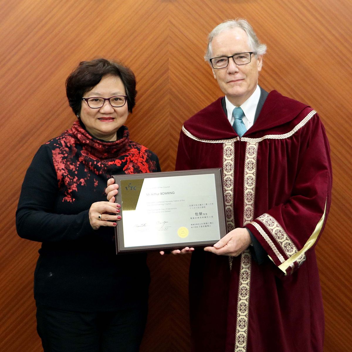 包榮先生獲VTC執行幹事尤曾家麗博士, GBS, JP頒授VTC榮譽院士榮銜