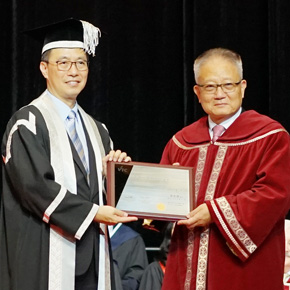吳宏斌博士, BBS, MH於2017年度畢業典禮上獲教育局局長楊潤雄先生, JP頒授VTC榮譽院士榮銜