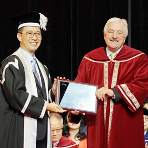 Mr John RUDDY, F.C.I.B.於2017年度畢業典禮上獲教育局局長楊潤雄先生, JP頒授VTC榮譽院士榮銜
