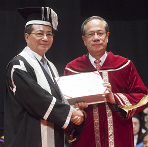 葉毓強先生於2012年度畢業典禮上獲教育局局長吳克儉先生, SBS, JP頒授VTC榮譽院士榮銜