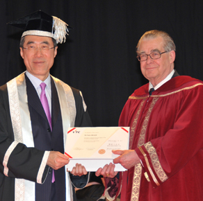 畢腓力先生於2010年度畢業典禮上獲政務司司長唐英年先生, GBM, GBS, JP頒授VTC榮譽院士榮銜