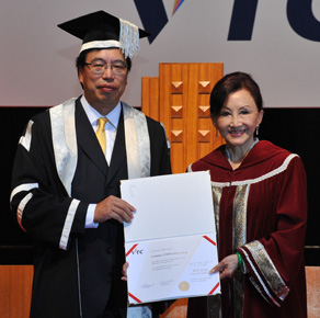 鄭明明教授於2008年度畢業典禮上獲職業訓練局主席梁君彥先生, SBS, JP頒授VTC榮譽院士榮銜 |