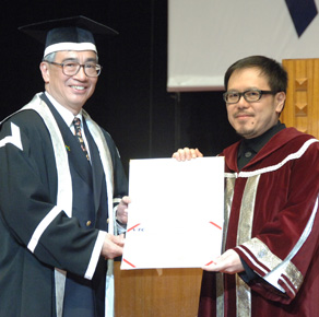 劉小康先生, BBS於2007年度畢業典禮上獲職業訓練局副主席李宗德先生, BBS, JP頒授VTC榮譽院士榮銜