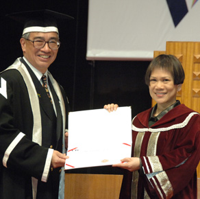 麥瑞琼女士於2007年度畢業典禮上獲職業訓練局副主席李宗德先生, BBS, JP頒授VTC榮譽院士榮銜