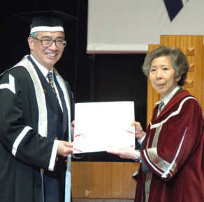 伍淑清博士, SBS, JP於2007年度畢業典禮上獲職業訓練局副主席李宗德先生, BBS, JP頒授VTC榮譽院士榮銜