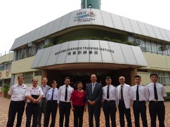 聯合國國際海事組織秘書長林基澤先生(右五)到訪海事訓練學院,與VTC執行幹事尤曾家麗會面,就香港海事業人力發展交流意見,並了解學院開辦的課程。