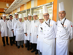大學教育資助委員會主席唐家成(右四)與VTC主席鍾志平博士及執行幹事尤曾家麗會晤,了解本港職業專才教育的發展及VTC提供的課程與服務,並參觀酒店及旅遊學院、中華廚藝學院、國際廚藝學院、香港專業教育學院(青衣)、香港知專設計學院、香港專業教育學院(李惠利)及青年學院(國際課程)。