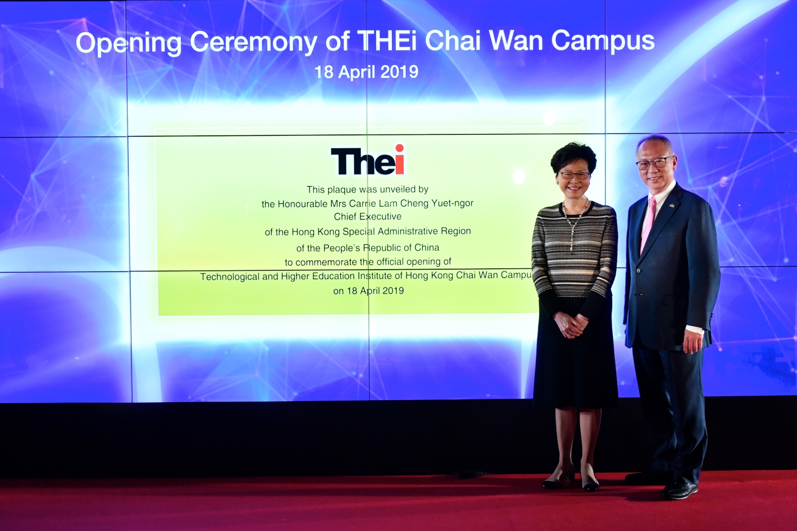 行政長官林鄭月娥在開幕典禮上說﹕「THEi柴灣校舍的啟用展示了政府全力支持提供職業專才教育的院校。除了職業訓練局提供的資助課程外,政府近年還透過不同措施支持自資院校包括THEi的發展和提供優質課程。」